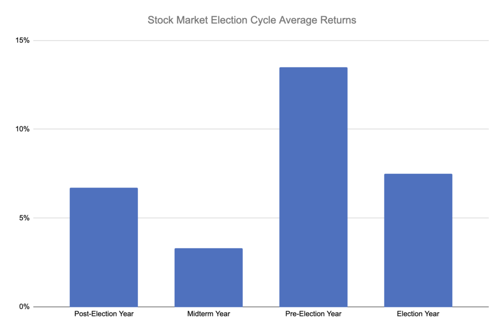 Post-Election Year (6.7%): This first year often features moderate returns as new policies and initiatives are rolled out, aiming to establish the administration’s agenda. For investors, this can mean a period of stability, with moderate growth as the market adjusts to the leadership.
