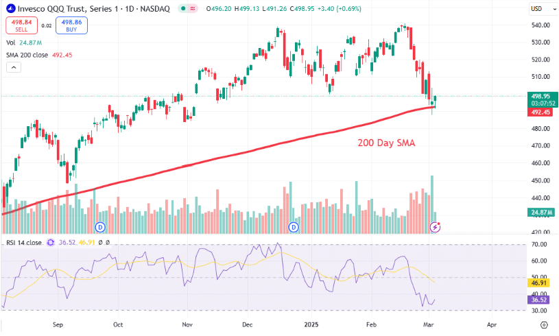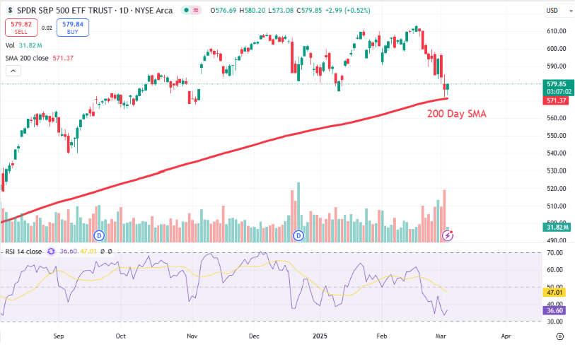 When you look at these charts, the recent volatility has not only stalled the strong rally from 2024, but it has also brought back into the picture the one key indicator we are tracking today – the 200 Day Simple Moving Average.