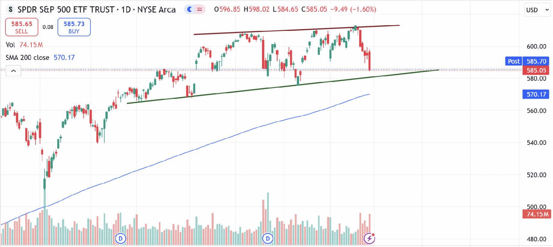 This drop is just the latest in a dip in the broader markets, where we are seeing many major indexes near key support levels that can act as a short-term support.